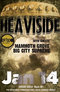 Heaviside is returning to Brixx Bar & Grill for their first major rock show of 2012! We will be taking the stage with Calgary rockers Mammoth Grove and Edmonton’s own Big City Supreme for what promises to be one hell of a rock show.